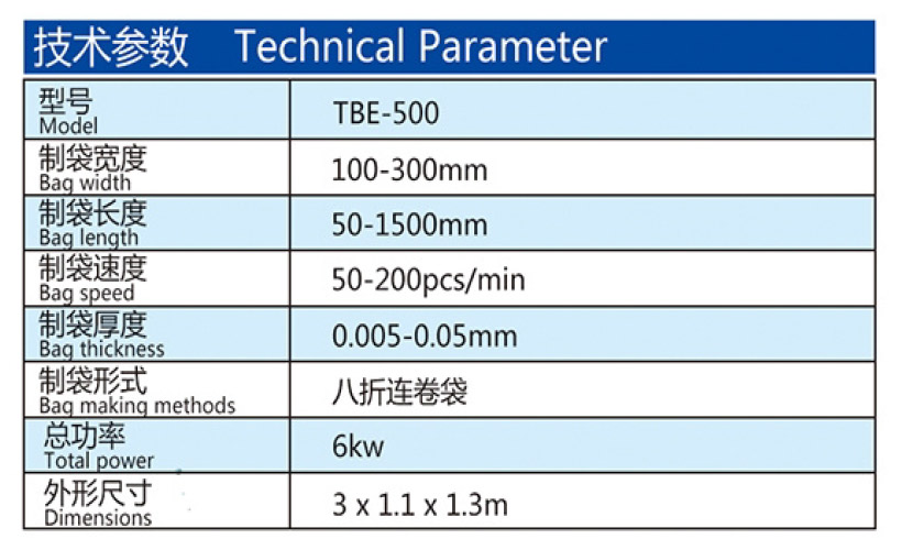 機(jī)器特性 此設(shè)備為生產(chǎn)連卷八折背心垃圾袋的專用設(shè)備,單通道高速無拉伸,操作簡單,底封好,收卷整齊,個數(shù)準(zhǔn)確,手動收卷。 此設(shè)備采用全鋼板一體而成,用電220V照明電即可。