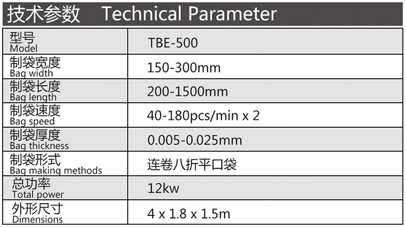 機器特性 此設備為生產連卷八折平口垃圾袋的專用設備,雙通道高速無拉伸底封好,收卷整齊,個數(shù)準確,手動手卷。主動放料,薄膜張力穩(wěn)定此設備采用全鋼板一體而成,用電220v照明電即可。